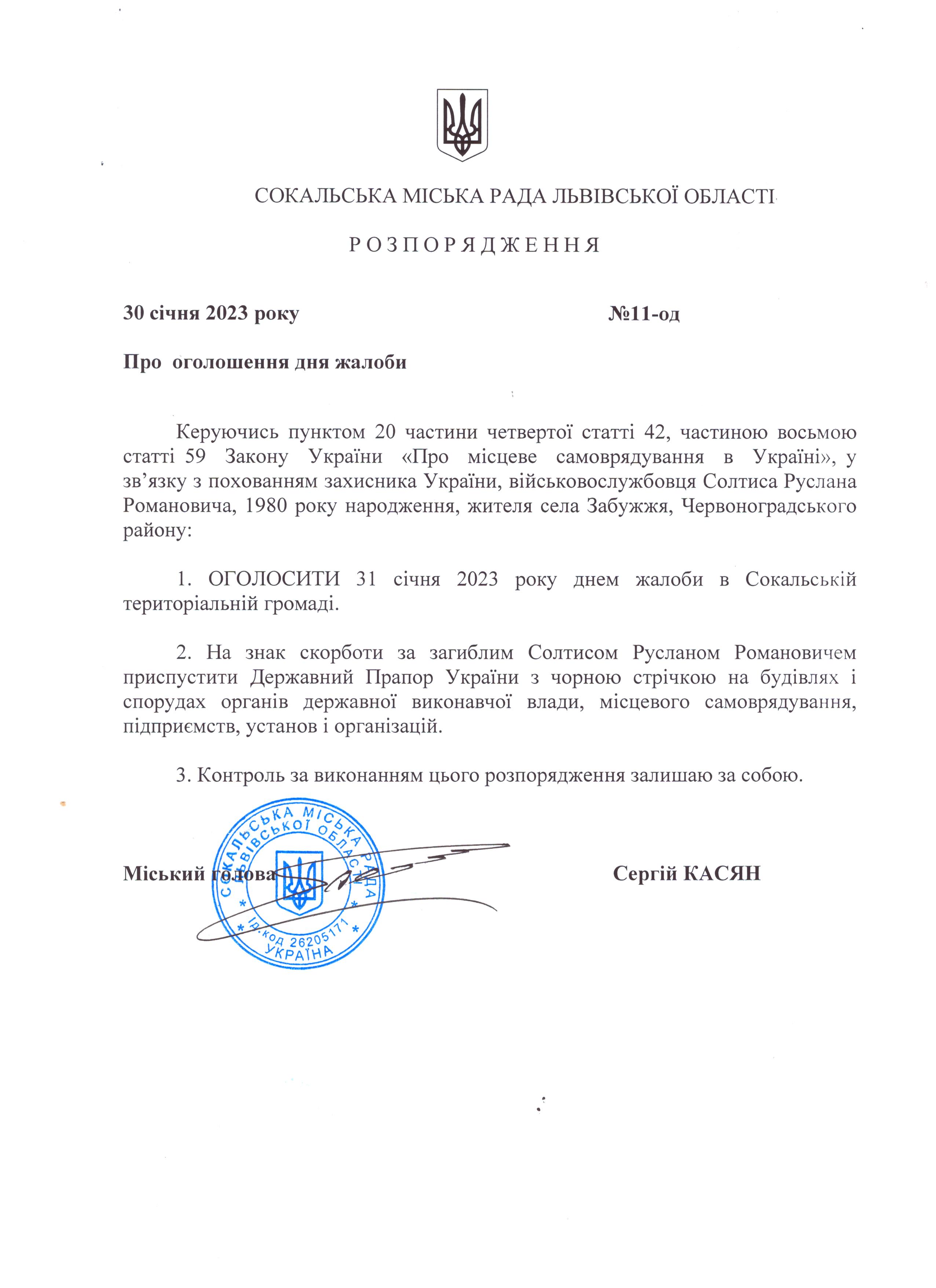 Розпорядження про День жалоби