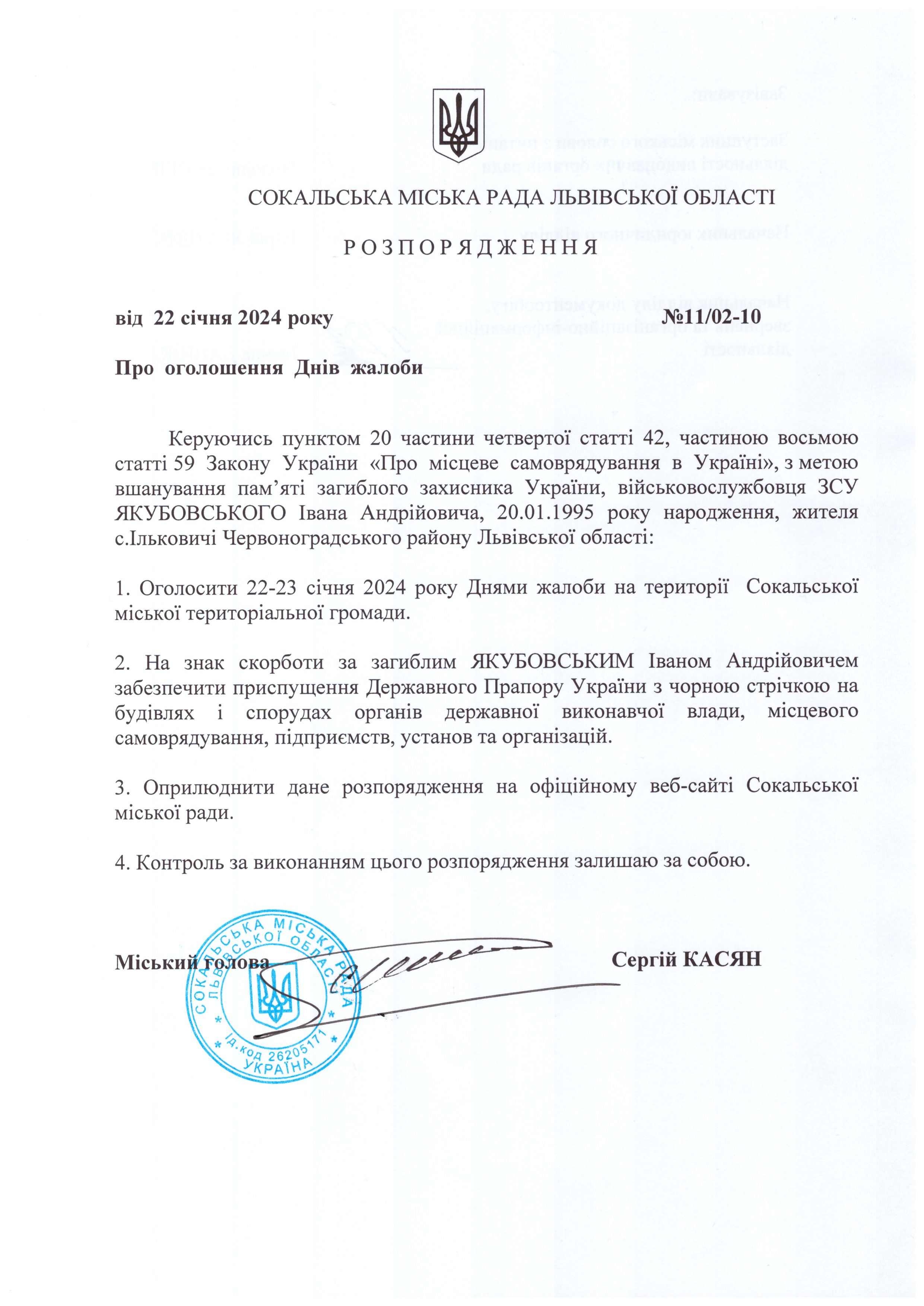 "ПРОТОКОЛ громадських слухань Детального плану території з метою визначення параметрів земельних ділянок для обслуговування викуплених будівель та впорядкування території по вул. Яворницького в м. Сокаль (ІІІ-я черга) та СЕО"